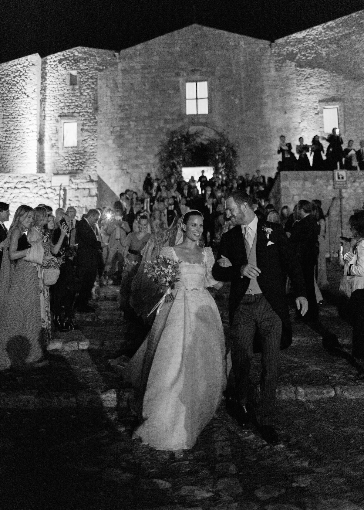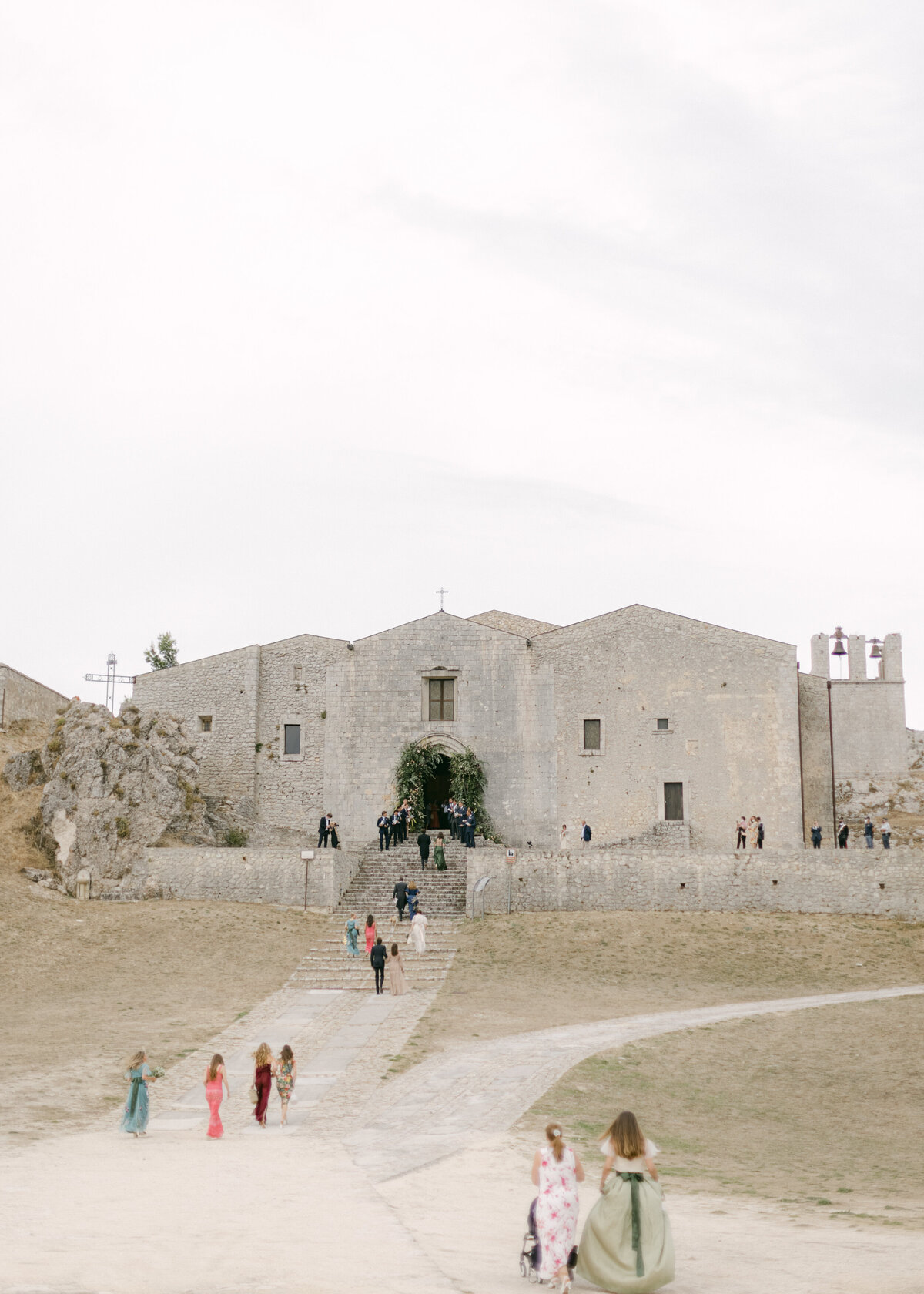 The ceremony was held in a Norman cathedral in the mountaintop medieval town of Caltabellotta. The town is built into the rock face and on the day of the wedding it was illuminated by traditional luminarie decorating the approach and beautiful Sicilian horses and carriages were ready to help on the piazza where the ceremony took place. Every detail had been thought of – I loved that the flowers throughout the day were chosen with symbolism in mind, including myrtle (love and fidelity), eucalyptus leaf (purity), olive branch (peace and victory), Speronella (Serenity), Clematis (ingenuity), and anemone (anticipation).